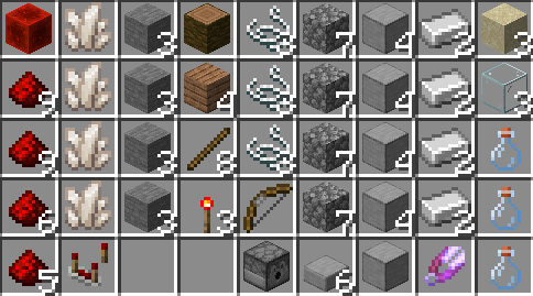 レッドストーンダスト、弓、丸石からディスペンサーを作ります。